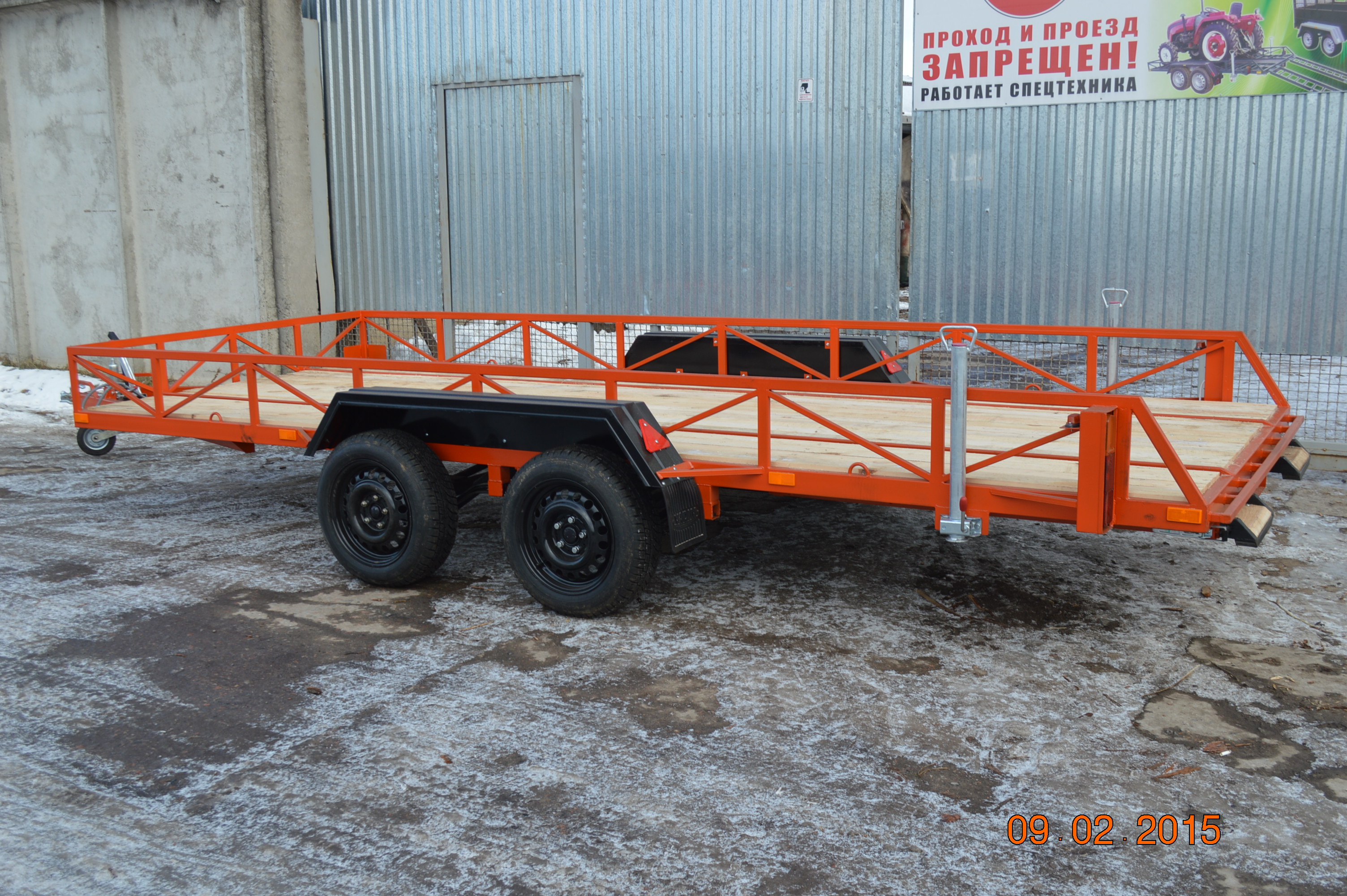 Прицеп универсальный, можно использовать как лафет для перевозки автомобилей, спецтехники, минитракторов, и др. Тормозной на 1 ось, 2-ух осный, грузоп. 2т., общая масса 2, 5т, размер 4, 5*1, 9. Резина R15, ходовая часть усиленная, рессора АЛКО, пол доска.