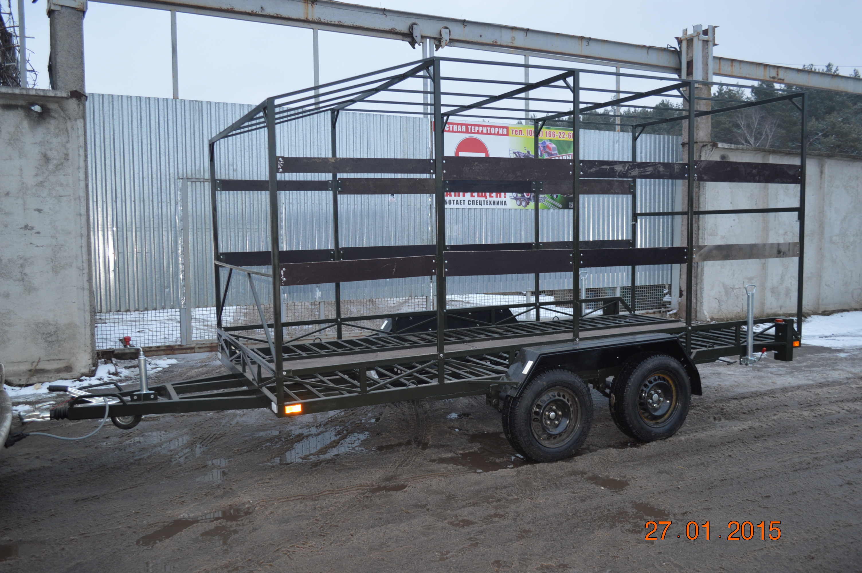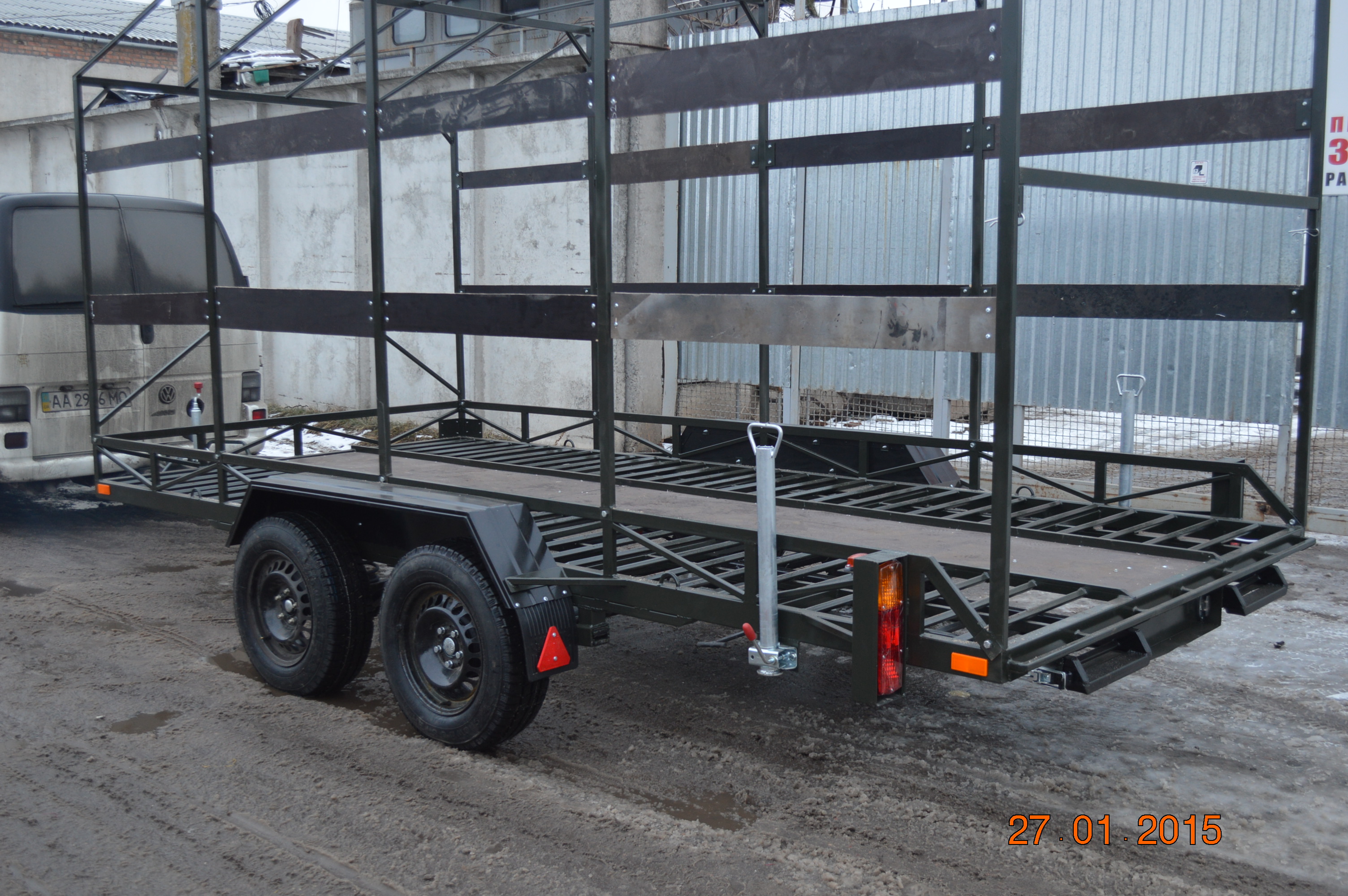 Прицеп для перевозки автомобилей, минитракторов и другой спецтехники. Размер 4,50*2,0, тормозной, резина 195/70/R15C. Каркас съёмный. Апарели под низом. Изготовим прицеп под ваши размеры и характер груза.