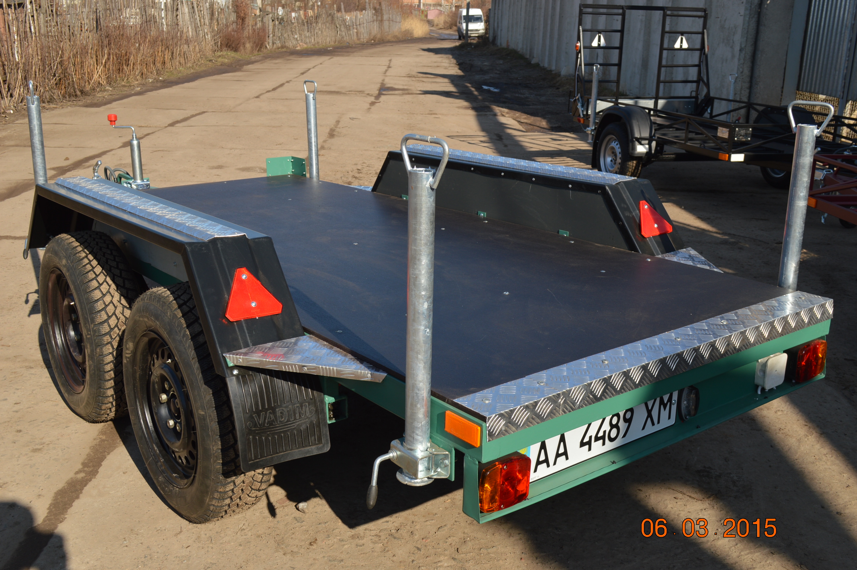 Прицеп под электростанцию, грузоп.2т., размер 1,20*2,80, 2-ух осный, нетормозной. 4 стойки опоры. Пол прицепа - влагостойкая фанера бакелит.