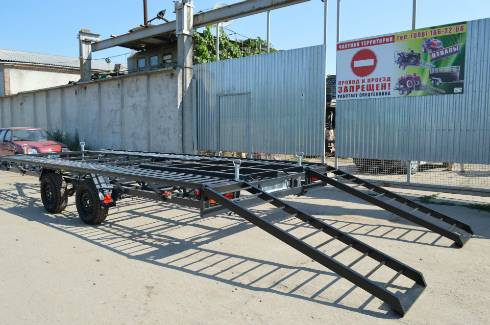 Прицеп универсальный можно использовать как лафет для перевозки квадроциклов, багги, автомобилей, минитракторов, или как просто бортовой.